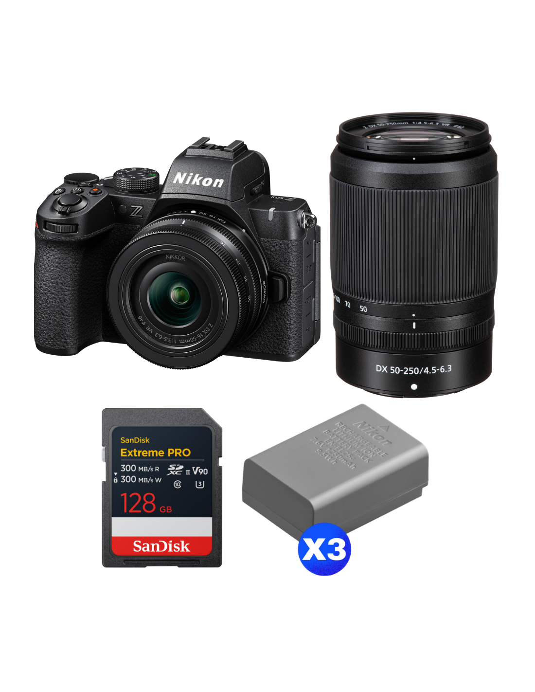 Nikon Z50 II + 16-50mm + 50-250mm + 1 SanDisk 128GB Extreme PRO UHS-II SDXC + 3 Nikon EN-EL25a