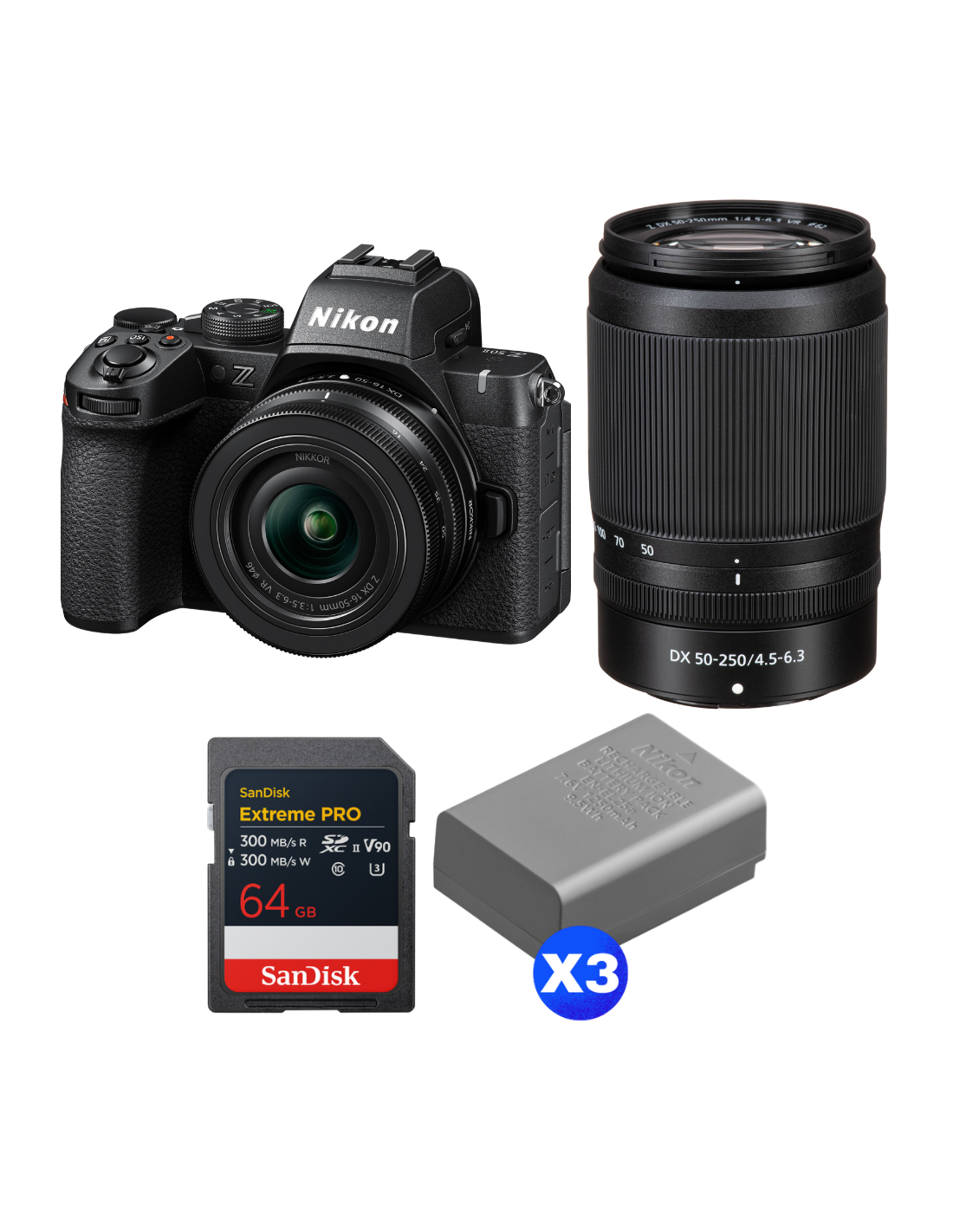 Nikon Z50 II + 16-50mm + 50-250mm + 1 SanDisk 64GB Extreme PRO UHS-II SDXC + 3 Nikon EN-EL25a