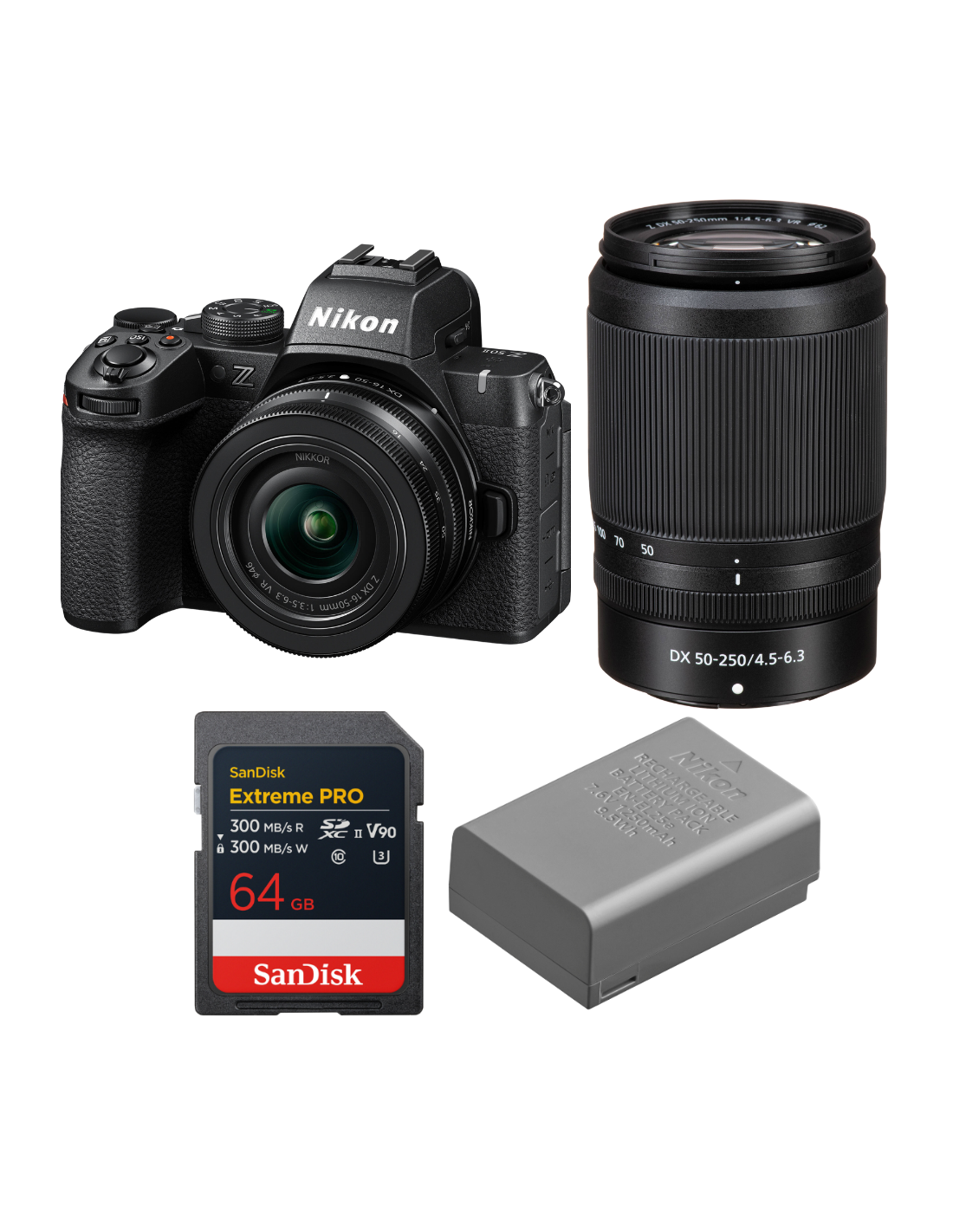 Nikon Z50 II + 16-50mm + 50-250mm + 1 SanDisk 64GB Extreme PRO UHS-II SDXC + Nikon EN-EL25a