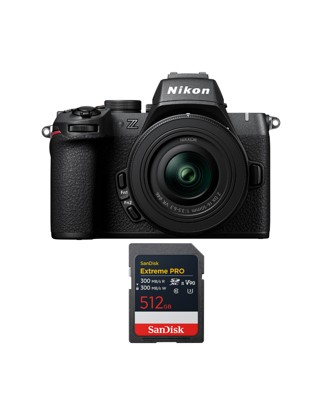 Nikon Z50 II + 16-50mm f/3.5-6.3 VR + 1 SanDisk 512GB Extreme PRO UHS-II SDXC