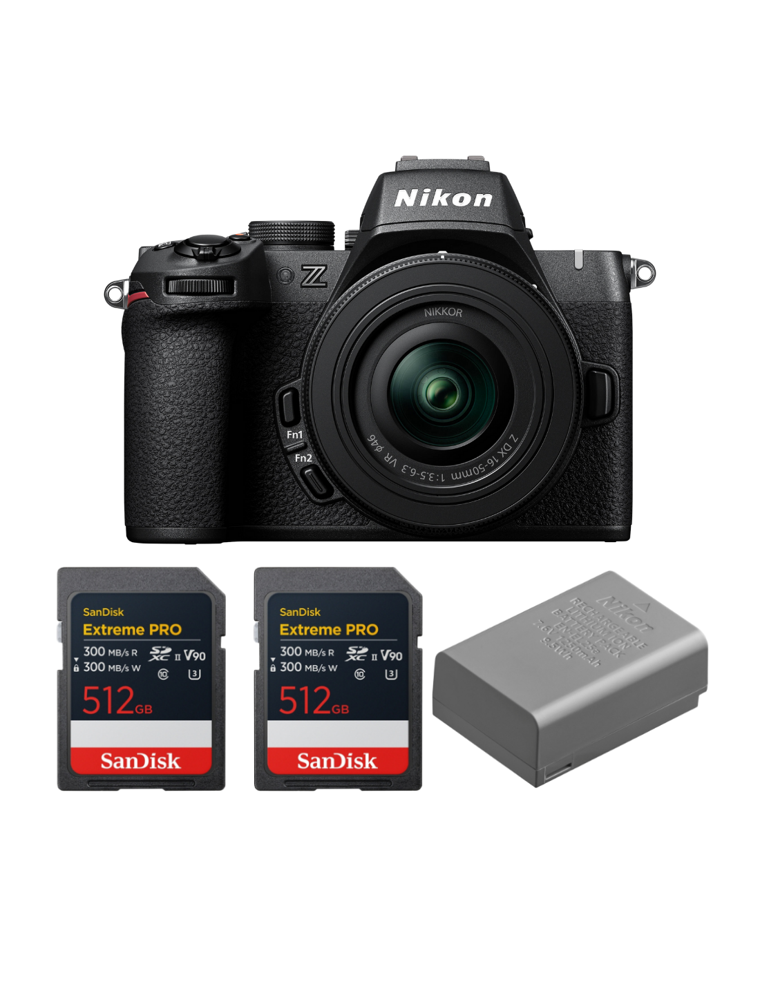 Nikon Z50 II + 16-50mm f/3.5-6.3 VR + 2 SanDisk 512GB Extreme PRO UHS-II SDXC + Nikon EN-EL25a
