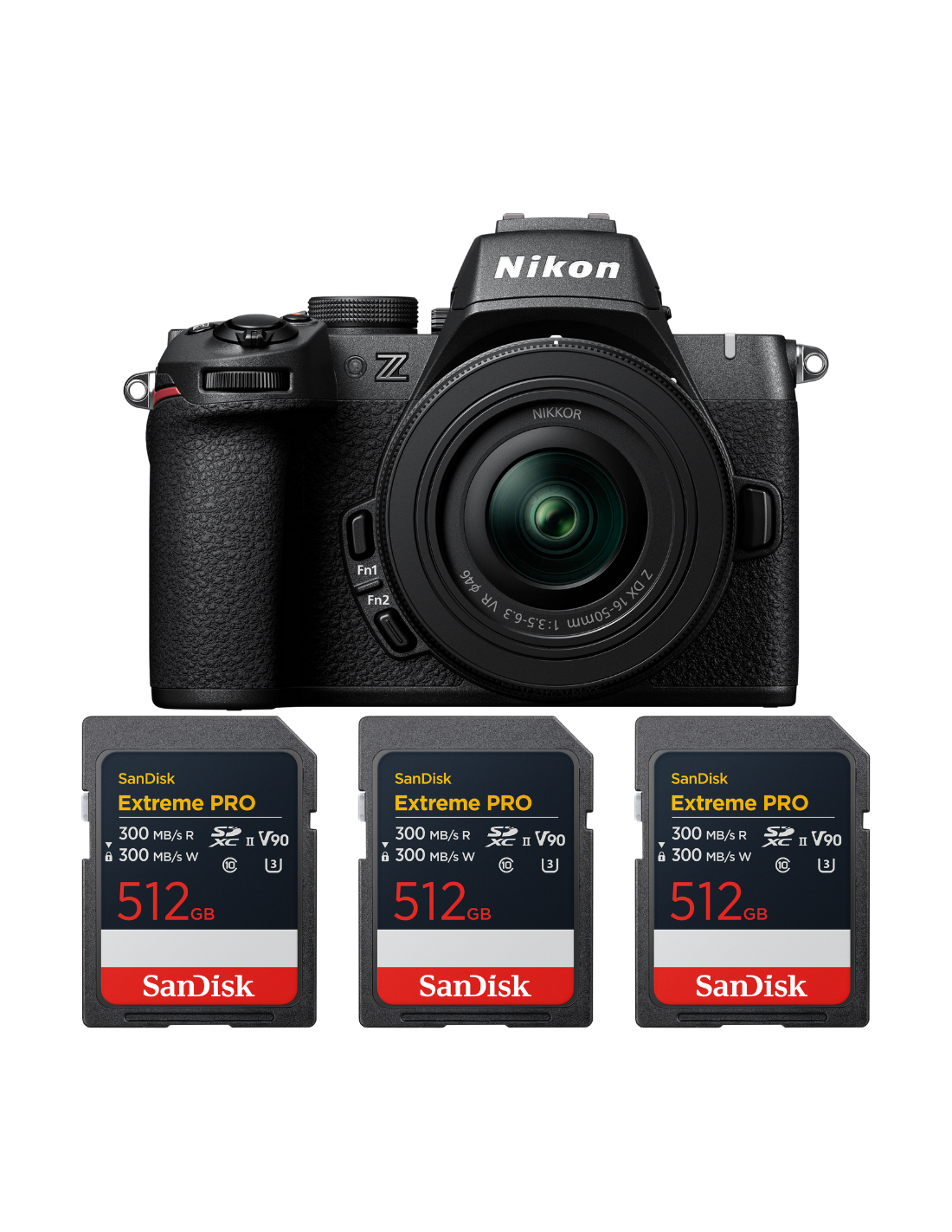 Nikon Z50 II + 16-50mm f/3.5-6.3 VR + 3 SanDisk 512GB Extreme PRO UHS-II SDXC