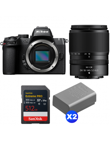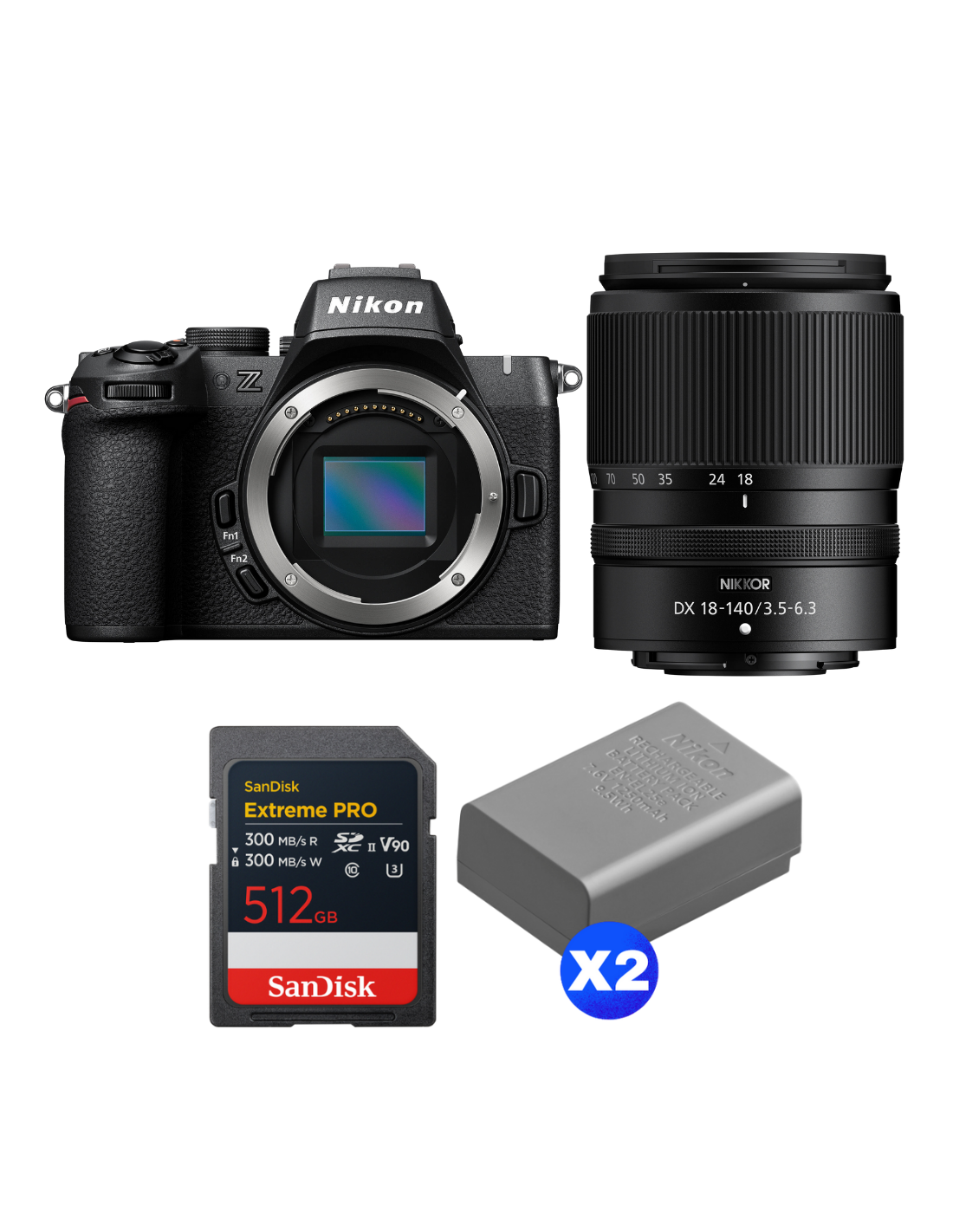 Nikon Z50 II + 18-140mm f/3.5-6.3 VR + 1 SanDisk 512GB Extreme PRO UHS-II SDXC + 2 Nikon EN-EL25a