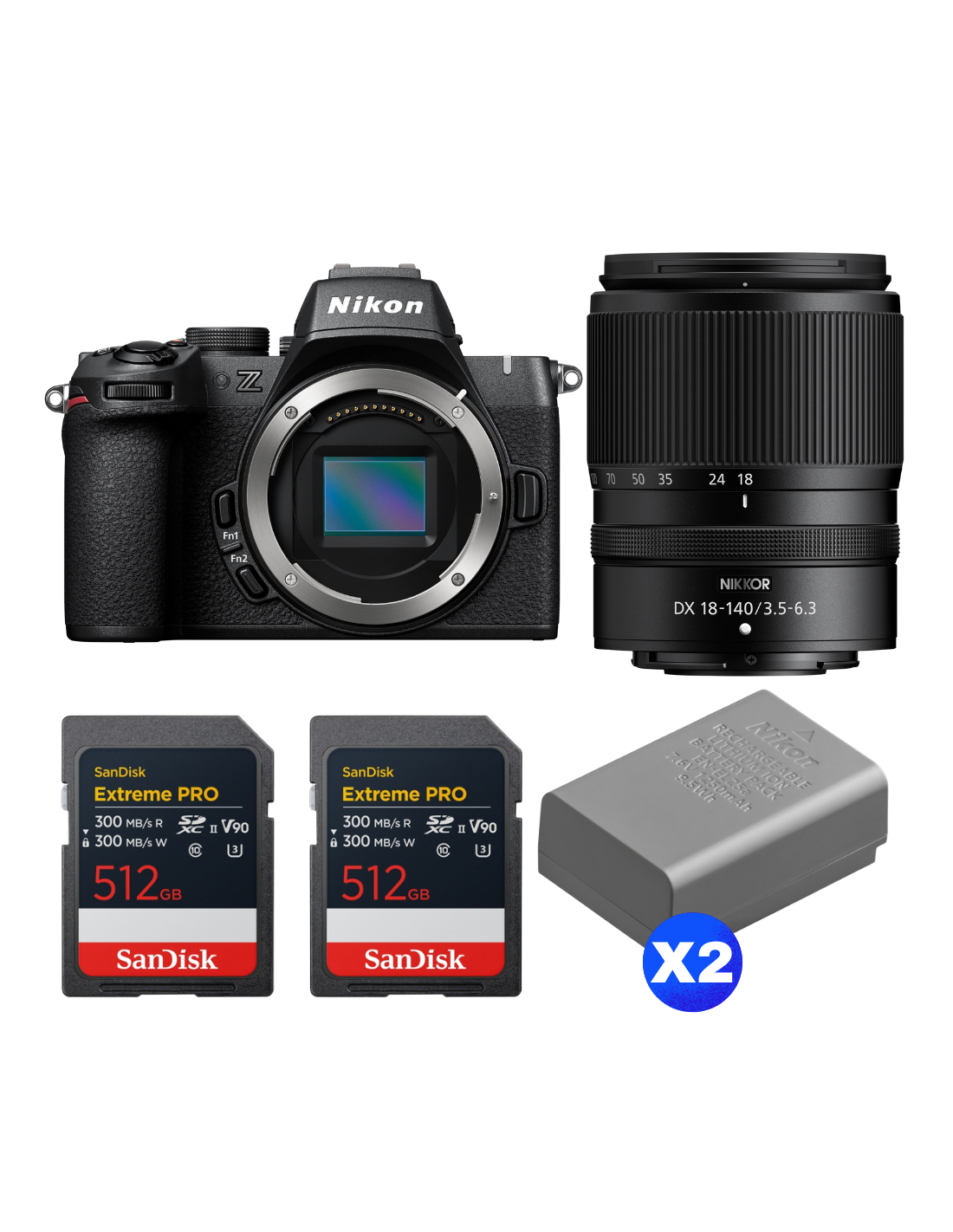 Nikon Z50 II + 18-140mm f/3.5-6.3 VR + 2 SanDisk 512GB Extreme PRO UHS-II SDXC + 2 Nikon EN-EL25a