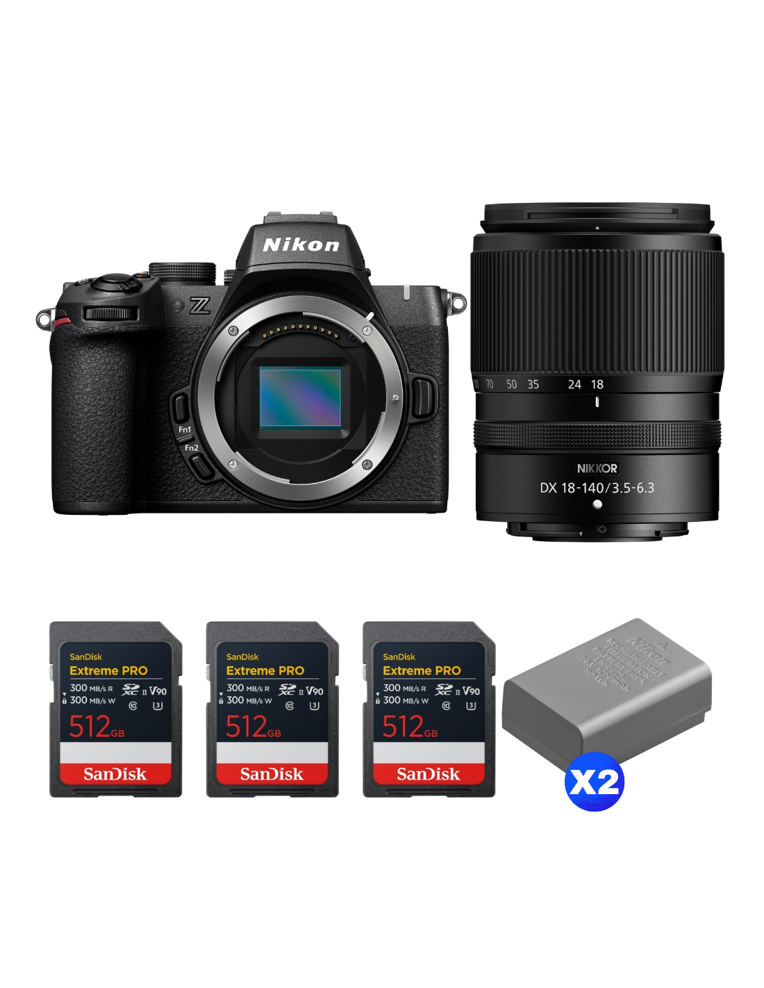 Nikon Z50 II + 18-140mm f/3.5-6.3 VR + 3 SanDisk 512GB Extreme PRO UHS-II SDXC + 2 Nikon EN-EL25a