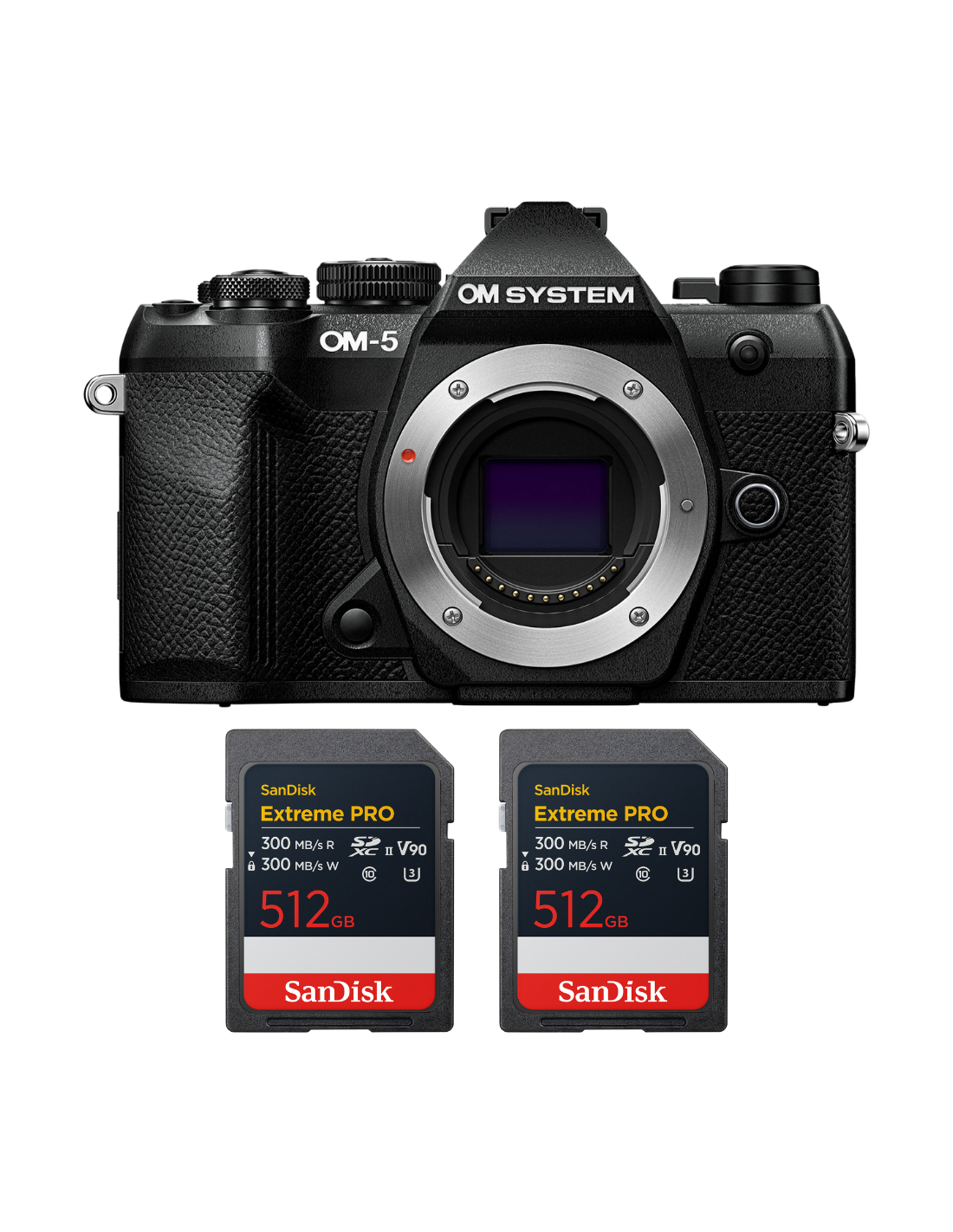 OM SYSTEM OM-5 Mark II Black + 2 SanDisk 512GB Extreme PRO UHS-II SDXC
