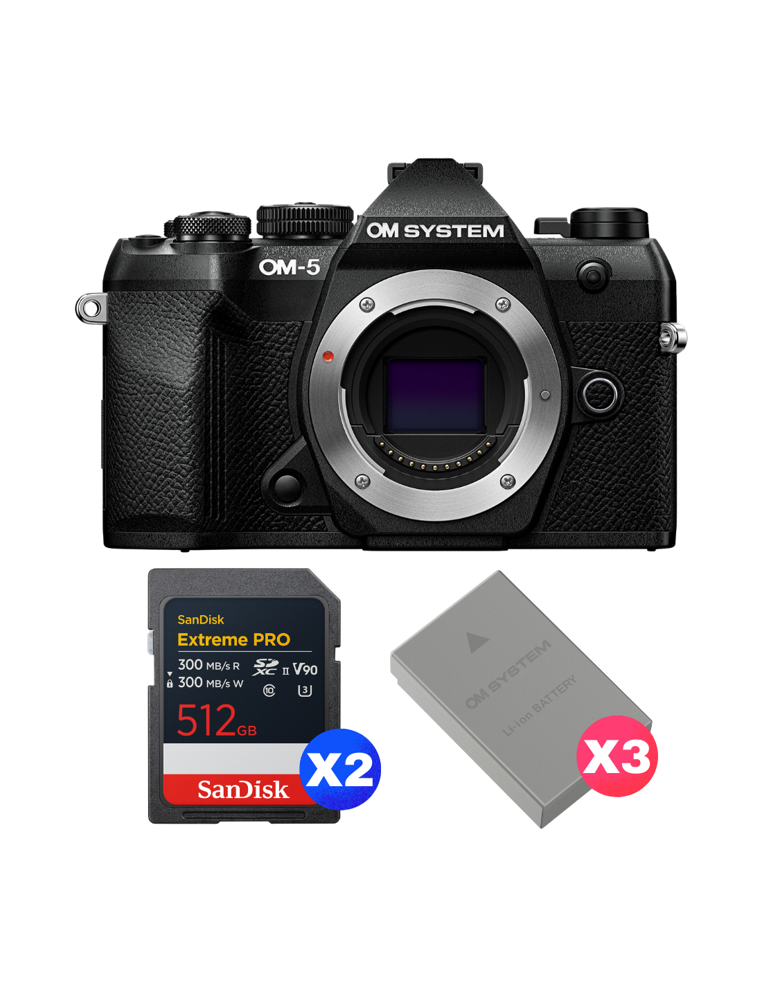 OM SYSTEM OM-5 Mark II Black + 2 SanDisk 512GB Extreme PRO UHS-II SDXC + 3 OM System BLS-50
