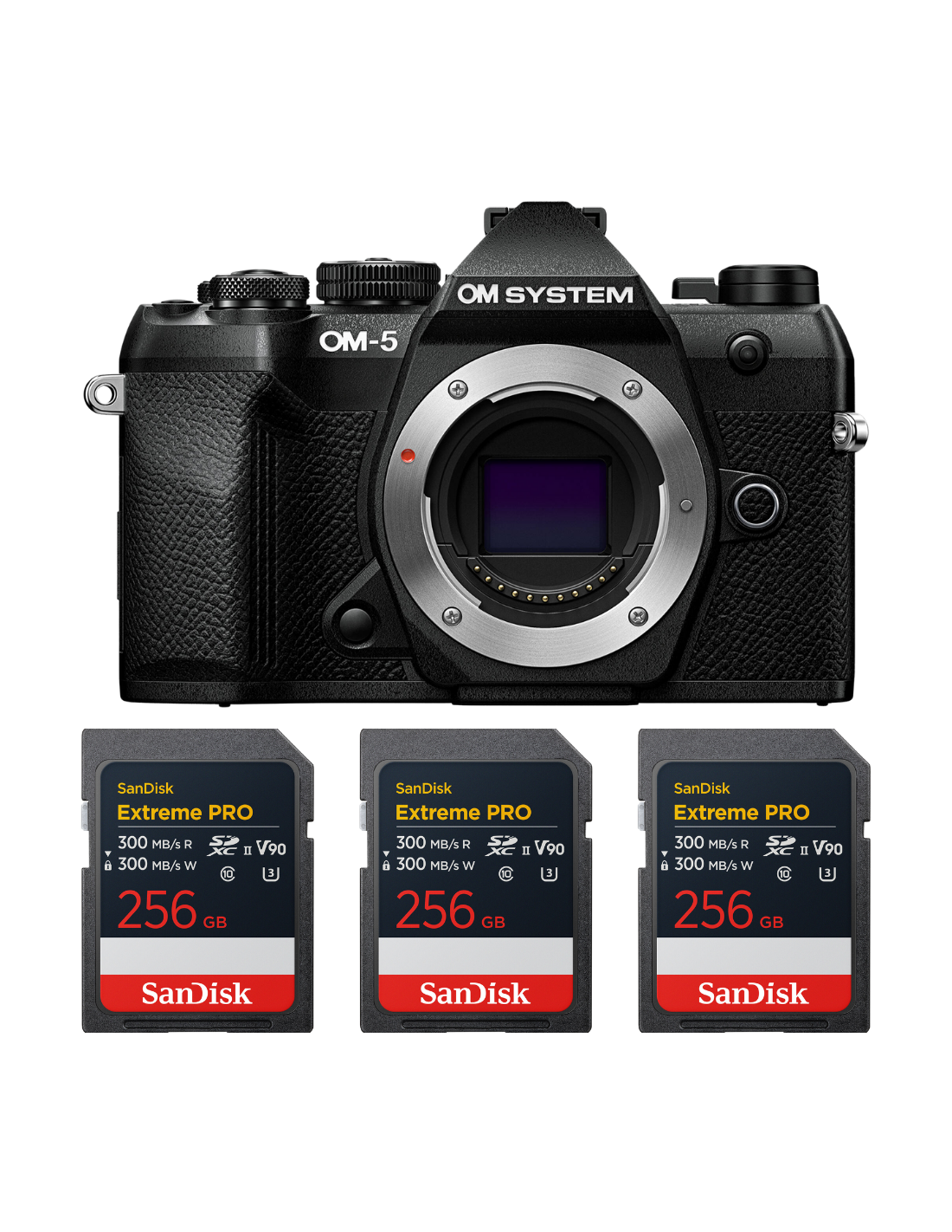 OM SYSTEM OM-5 Mark II Black + 3 SanDisk 256GB Extreme PRO UHS-II SDXC