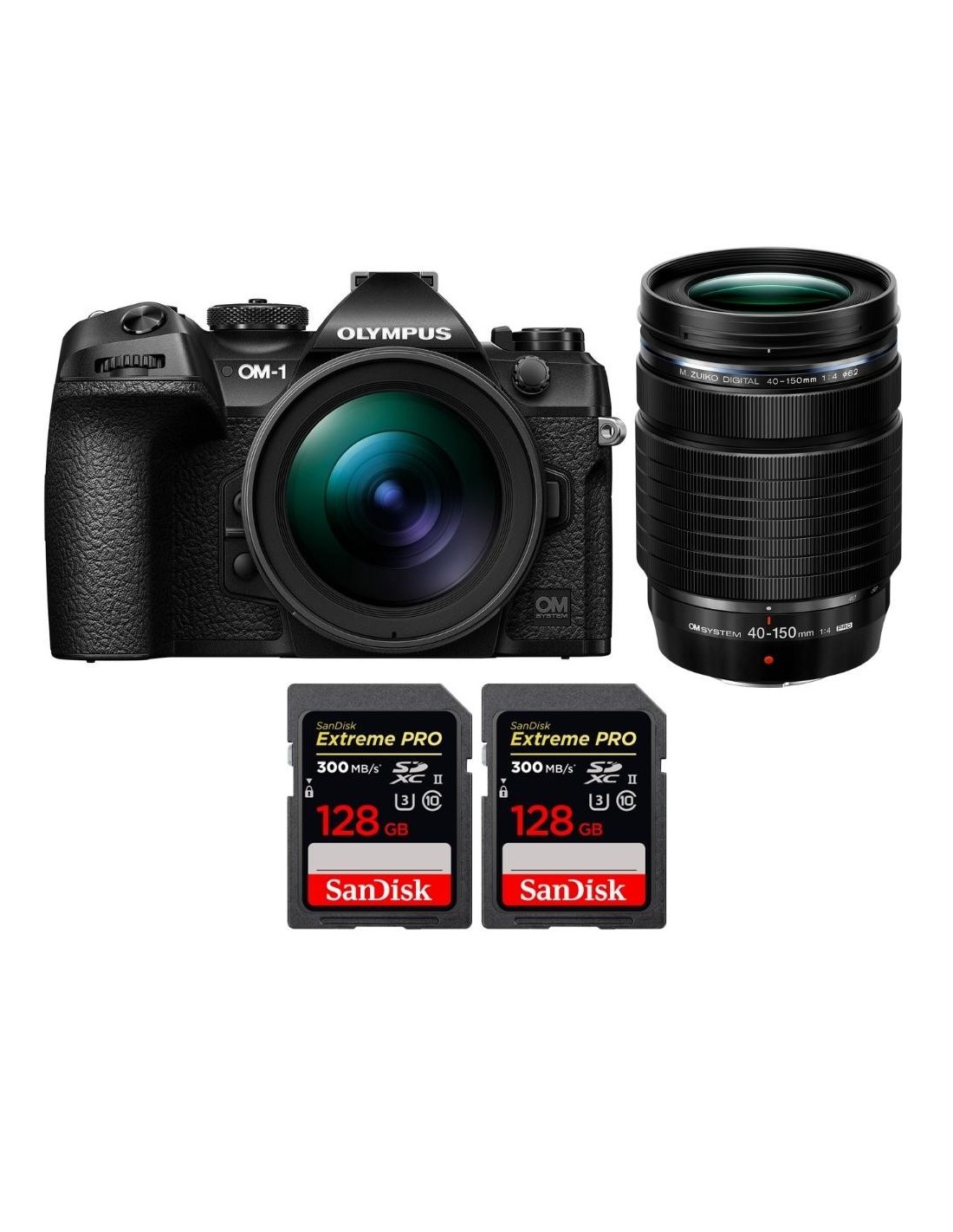 OM SYSTEM OM-1 + ED 12-40mm f/2.8 PRO II + ED 40-150mm f/4 PRO + 2 SanDisk 128GB Extreme PRO UHS-II SDXC 300 MB/s