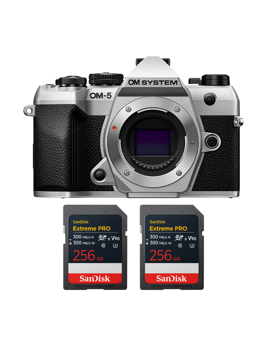OM SYSTEM OM-5 Mark II Silver + 2 SanDisk 256GB Extreme PRO UHS-II SDXC