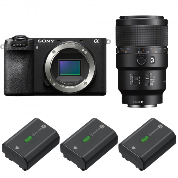 Sony A6700 + FE 90mm f/2.8 Macro G OSS + 3 Sony NP-FZ100