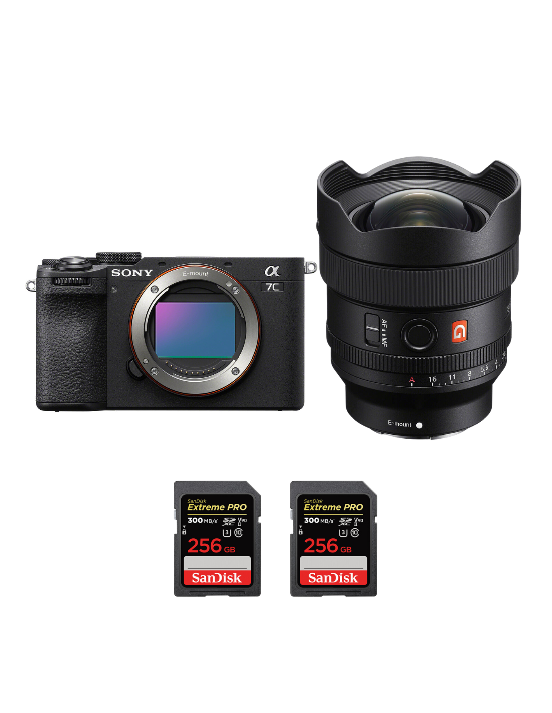 Sony A7C II Black + FE 14mm f/1.8 GM + 2 SanDisk 256GB Extreme PRO UHS-II SDXC 300 MB/s