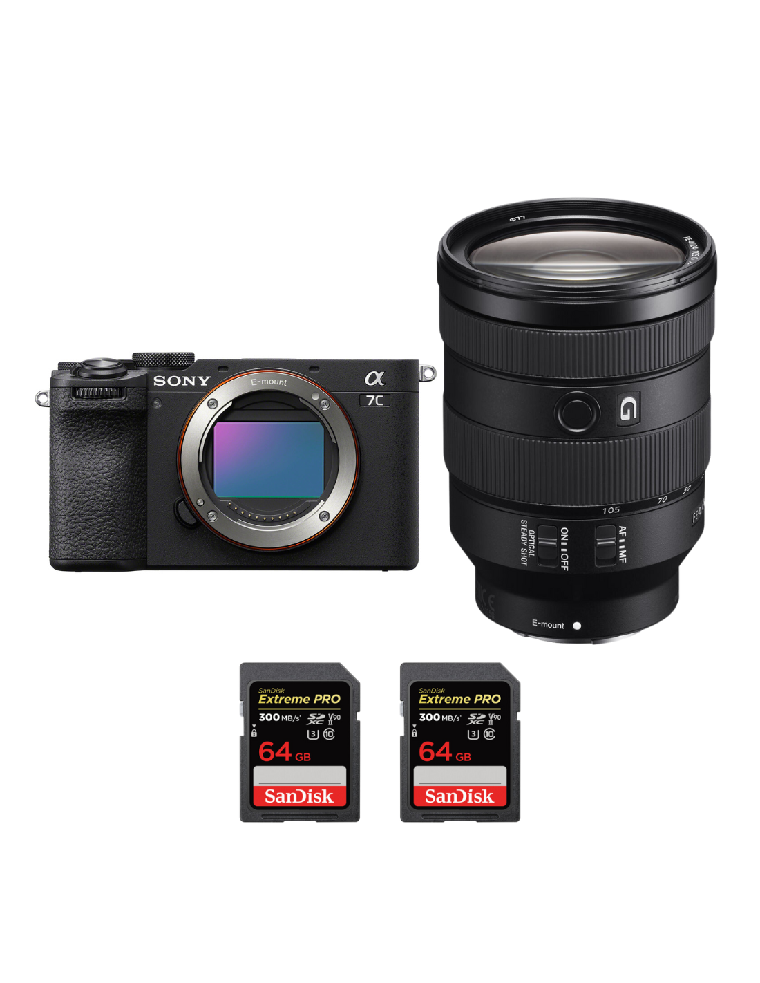Sony A7C II Black + FE 24-105mm f/4 G OSS + 2 SanDisk 64GB Extreme PRO UHS-II SDXC 300 MB/s