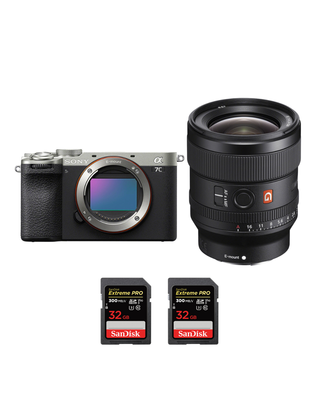 Sony A7C II Silver + FE 24mm f/1.4 GM + 2 SanDisk 32GB Extreme PRO UHS-II SDXC 300 MB/s