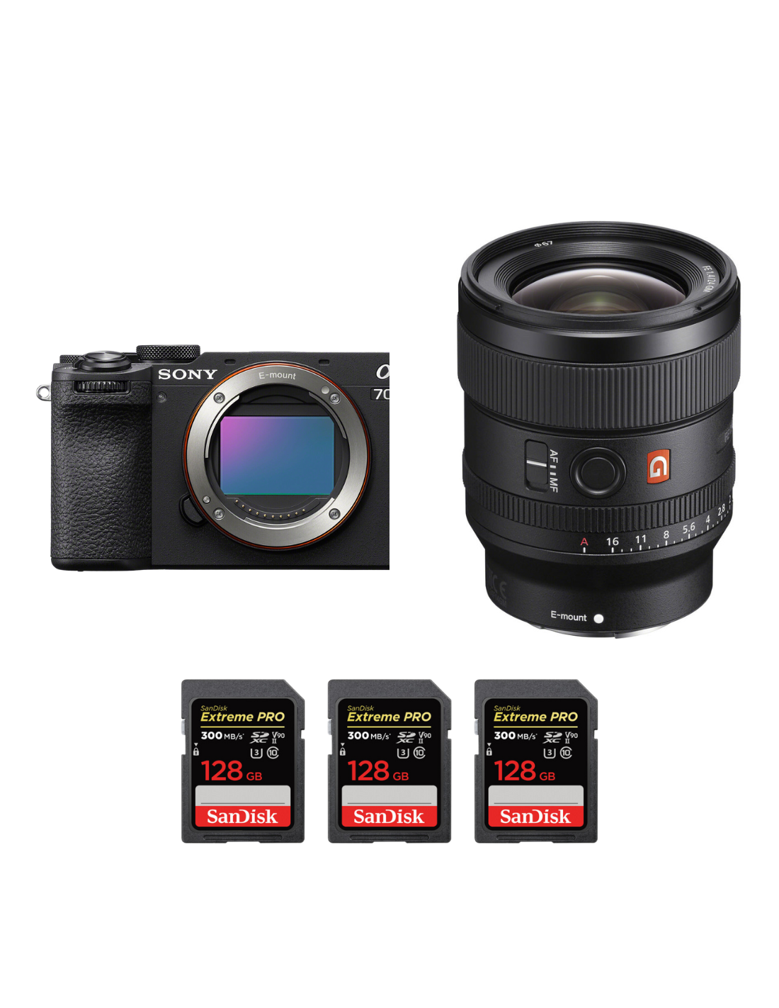 Sony A7CR Black + FE 24mm f/1.4 GM + 3 SanDisk 128GB Extreme PRO UHS-II SDXC 300 MB/s