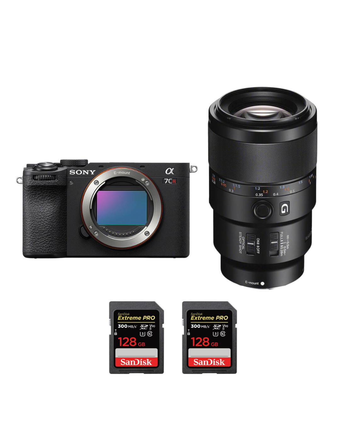 Sony A7CR Black + FE 90mm f/2.8 Macro G OSS + 2 SanDisk 128GB Extreme PRO UHS-II SDXC 300 MB/s