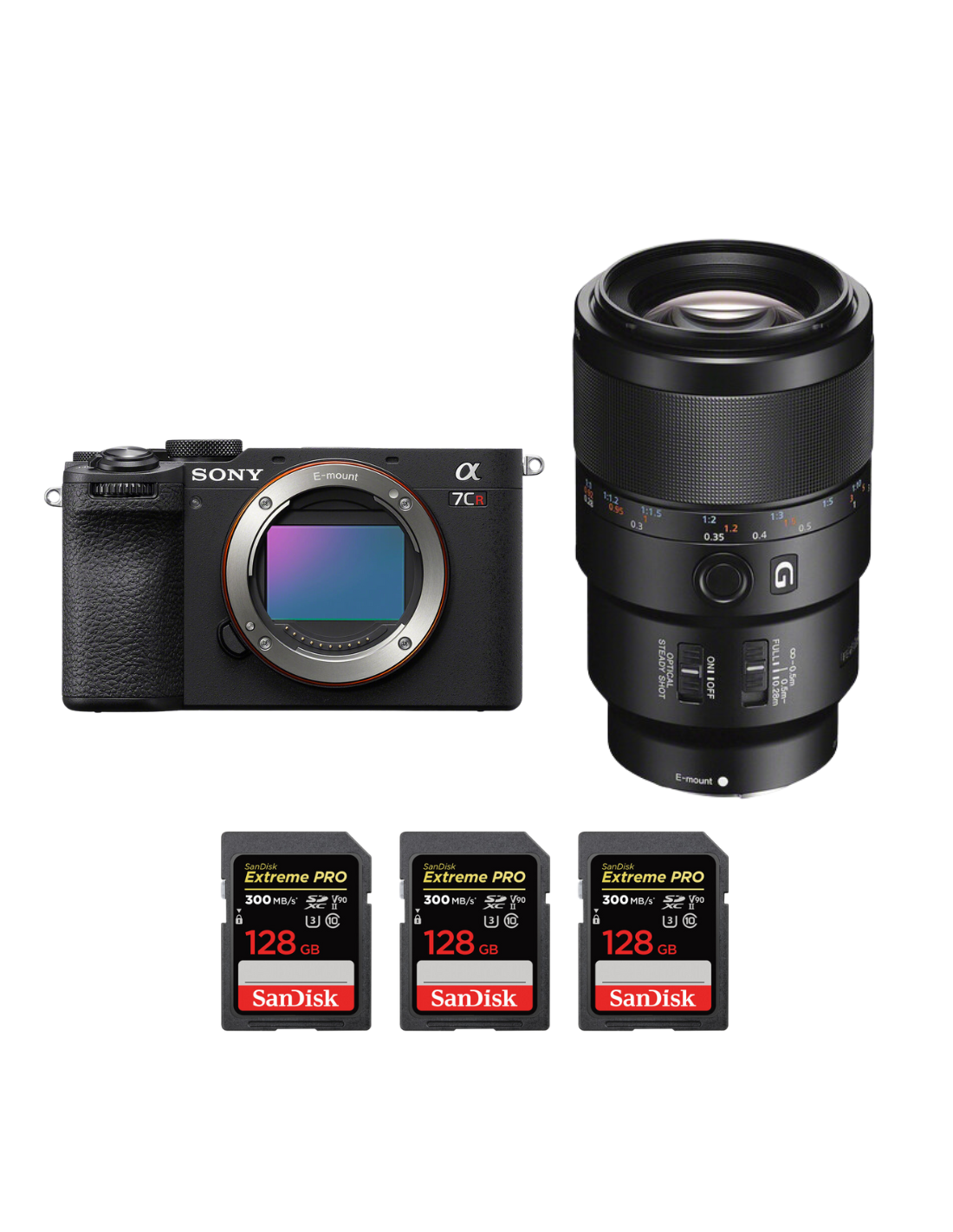 Sony A7CR Black + FE 90mm f/2.8 Macro G OSS + 3 SanDisk 128GB Extreme PRO UHS-II SDXC 300 MB/s