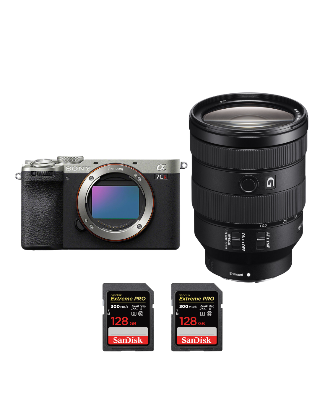Sony A7CR Silver + FE 24-105mm f/4 G OSS + 2 SanDisk 128GB Extreme PRO UHS-II SDXC 300 MB/s
