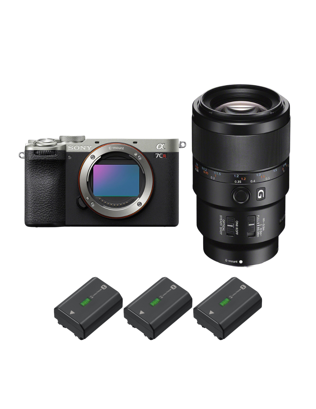 Sony A7CR Silver + FE 90mm f/2.8 Macro G OSS + 3 Sony NP-FZ100